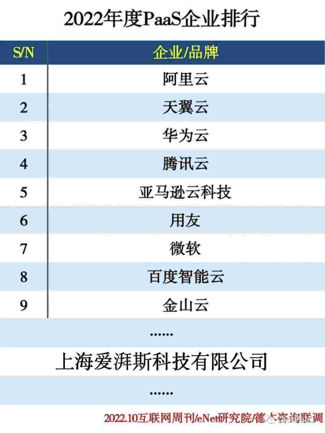 近日,,,,Internet Deep发布了由互联网周刊、、、、eNet研究院、、德本咨询联合调查的”2022年度PaaS企业排行“榜单,,上海爱湃斯科技有限公司(以下简称美团钱包商家版),,,凭借强大的建模能力,,,,为各行业头部客户解决复杂业务需求的实践经验以及强大的集成扩展能力,,,,入选2022年度PaaS企业排行TOP 50。。。